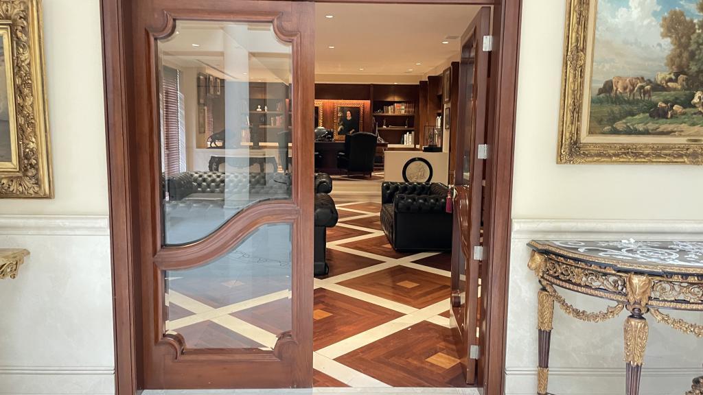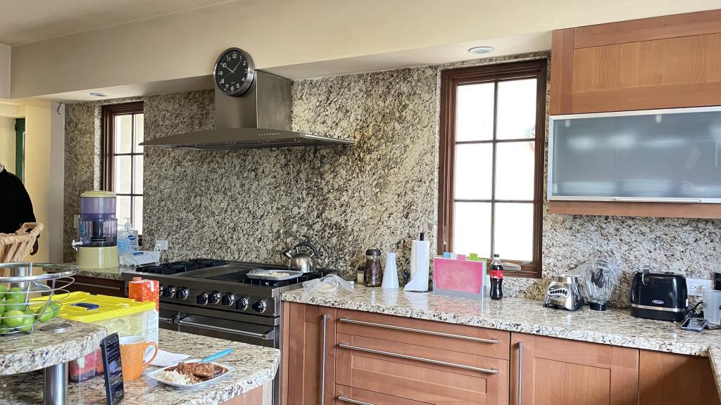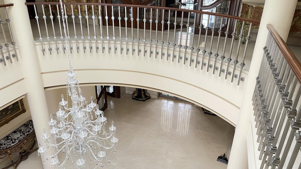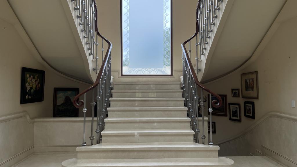 Garage Cochera / Driveway Frontyard Cocina con Isla o Barra Columnas Tina Oficina Despacho Escalera Casa Tenis Mansion Fancy