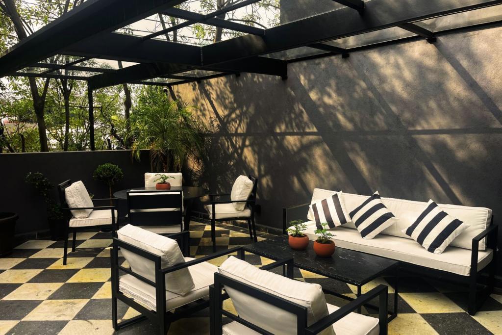 Piso de Domino Ajedrez Terraza / Rooftop Escalera Casa Ladrillo Hipster