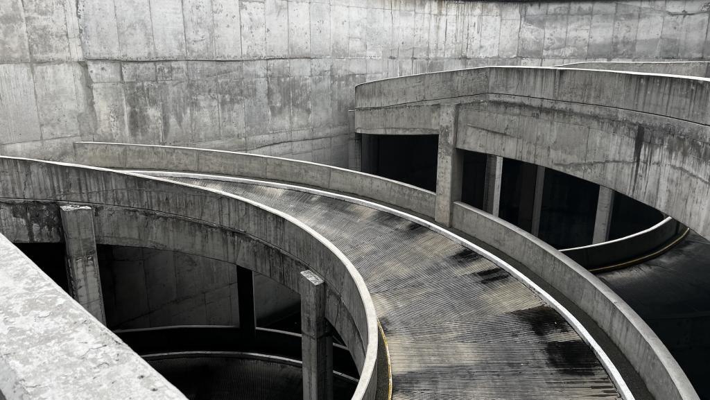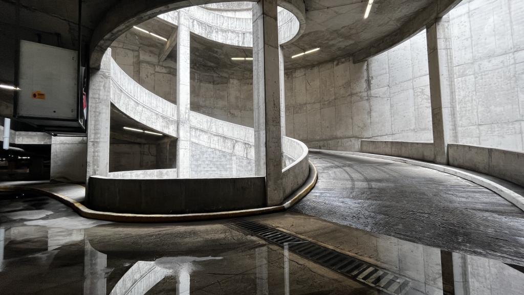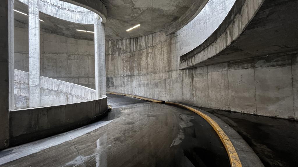 De arquitectura brutalista, urbana y perfectamente estructurada para ser utilizada como locación audiovisual. Diseñada con bloques de concreto aparente, líneas duras, rampas, pasillos elevados y muros angulados, este complejo ofrece múltiples encuadres visuales con una estética cruda, industrial y geométrica que remite al diseño urbano de los años 70 pero en contexto contemporáneo.