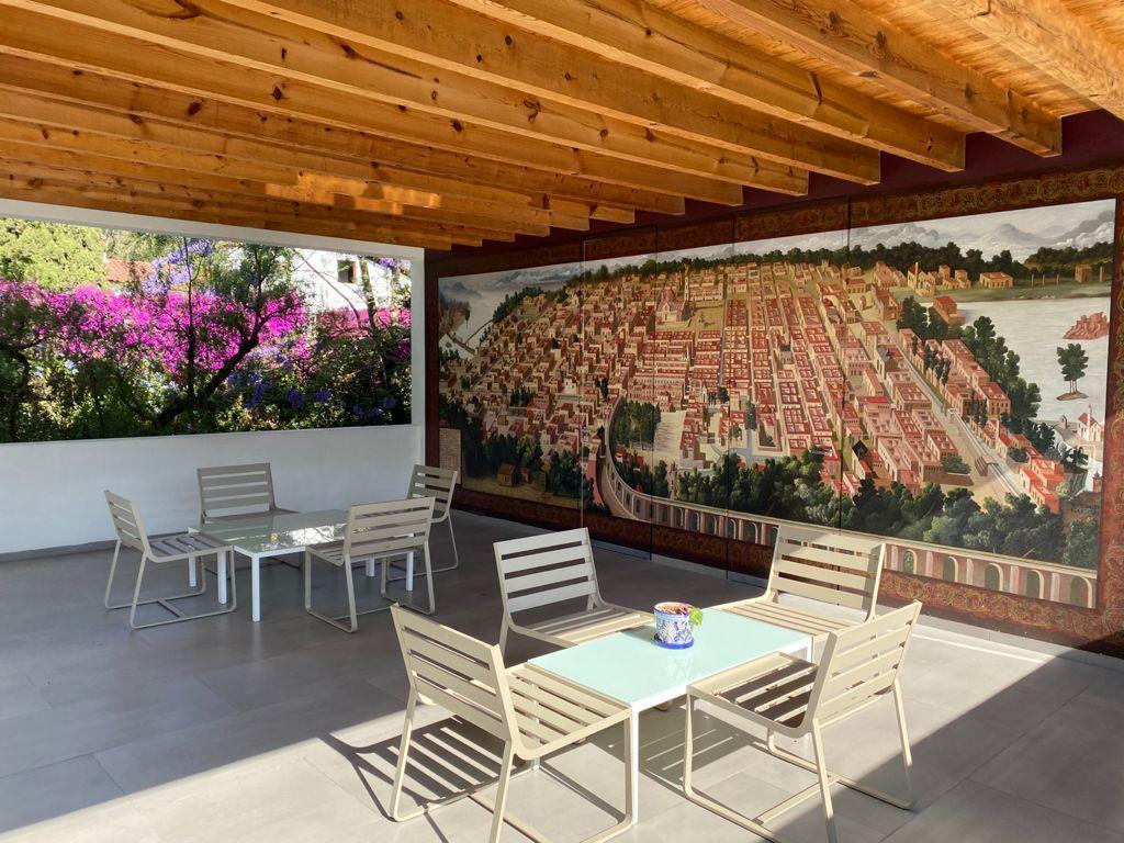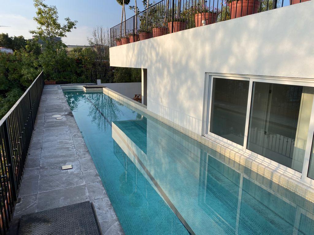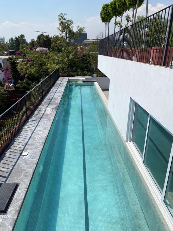 Alberca dentro de una casa moderna que se renta cómo air bnb.