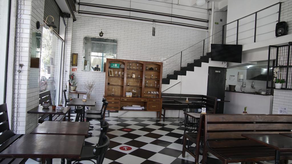 Ventanales Piso de Domino Ajedrez Running Shot Bar Restaurante Cafe Cafeteria Esquina Calle Azulejo