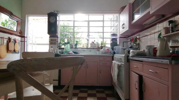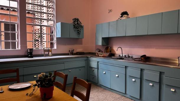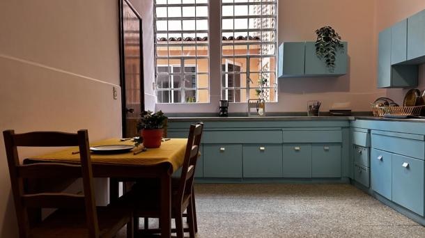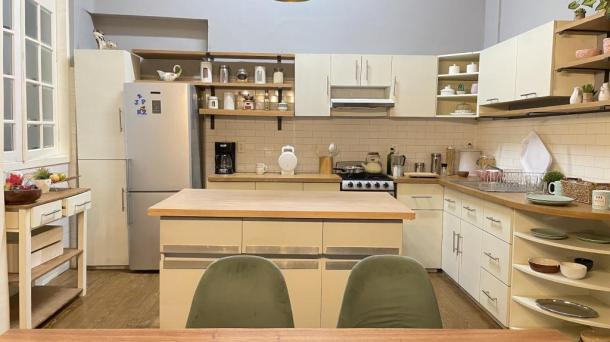 Cocina con Isla o Barra Cocina Terraza / Rooftop Ingles Frances Porfiriana Retro Vintage Deslavado Usado Gastado Open Kitchen / Cocina Abierta