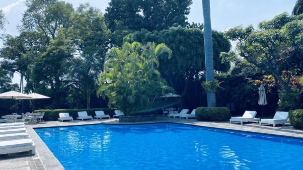Alberca de hotel de lujo.