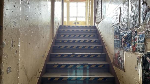 Fronton Escalera Casa Papel Tapiz Cutre Retro Vintage Deslavado Usado Gastado