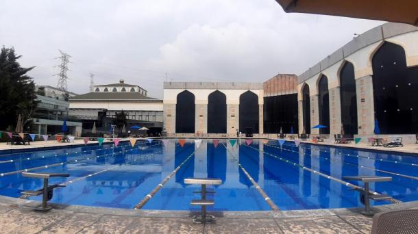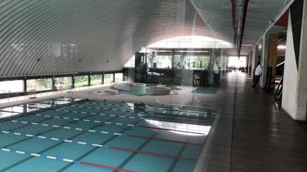 Alberca dentro del club deportivo Centro Libanés. Con vistas a la ciudad y también hacia la fachada del edific...