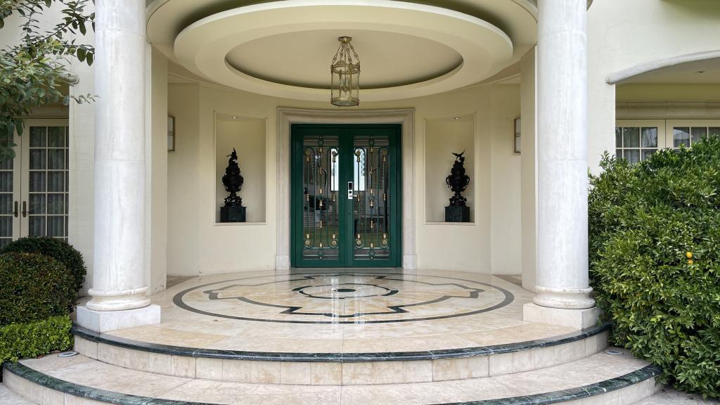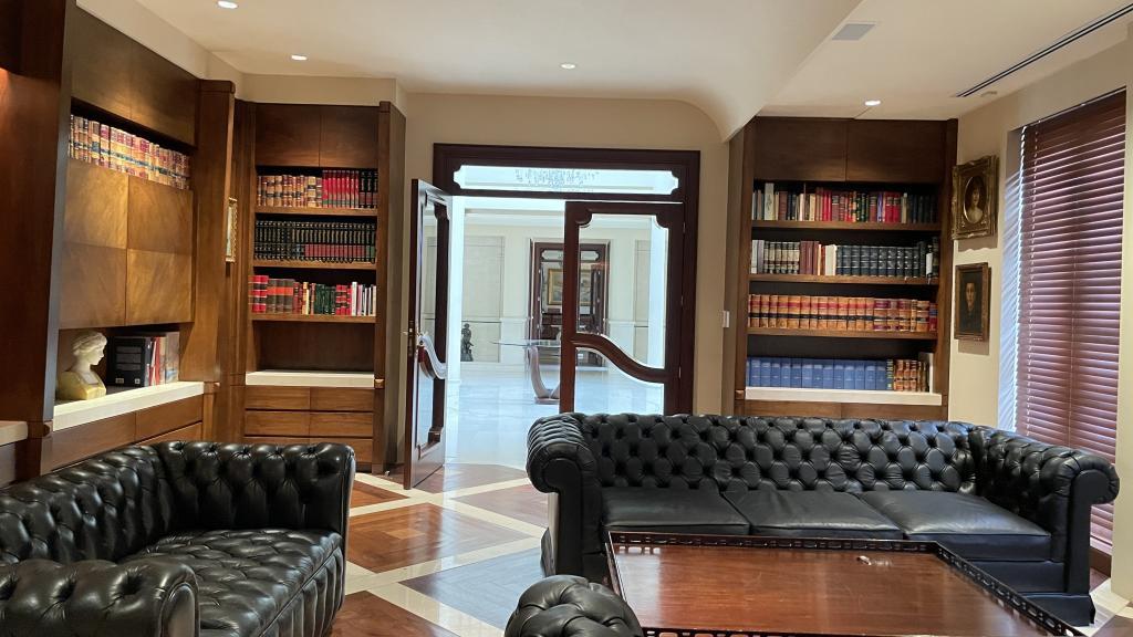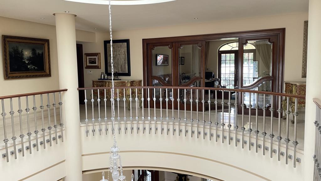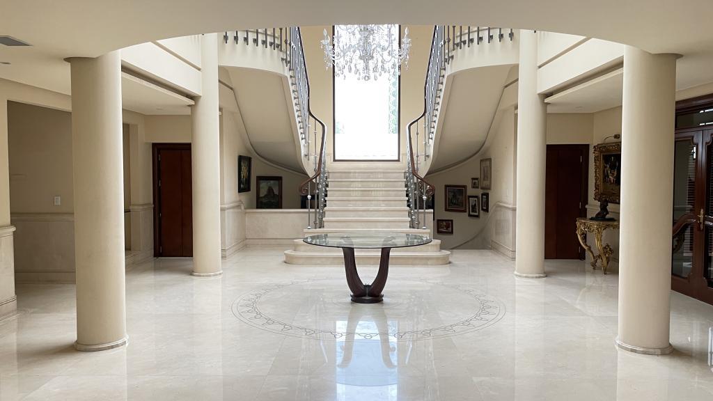 Garage Cochera / Driveway Frontyard Cocina con Isla o Barra Columnas Tina Oficina Despacho Escalera Casa Tenis Mansion Fancy