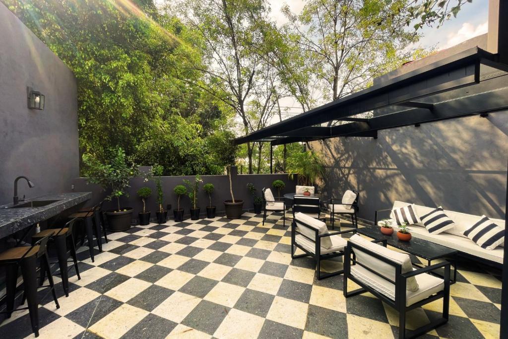 Piso de Domino Ajedrez Terraza / Rooftop Escalera Casa Ladrillo Hipster