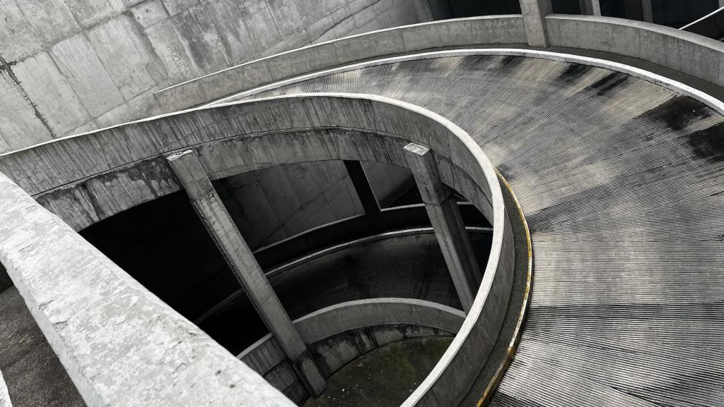 Estacionamiento Brutalista Escalones / Escalera Exterior Escalera Servicios