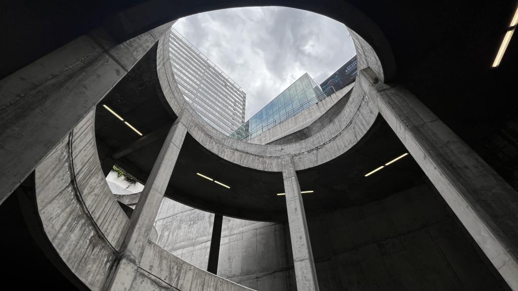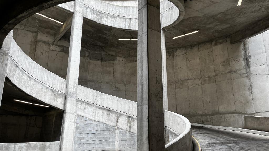 De arquitectura brutalista, urbana y perfectamente estructurada para ser utilizada como locación audiovisual. Diseñada con bloques de concreto aparente, líneas duras, rampas, pasillos elevados y muros angulados, este complejo ofrece múltiples encuadres visuales con una estética cruda, industrial y geométrica que remite al diseño urbano de los años 70 pero en contexto contemporáneo.