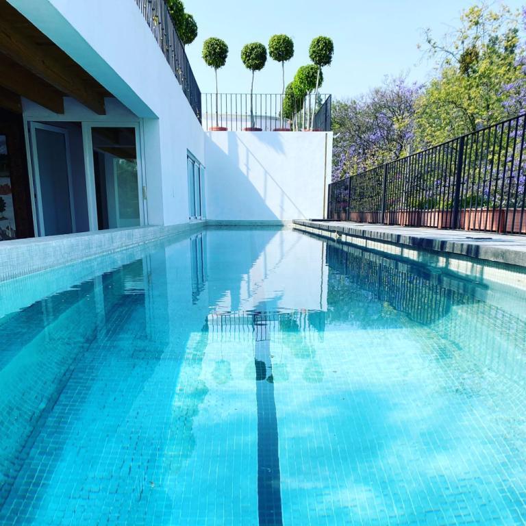 Alberca dentro de una casa moderna que se renta cómo air bnb.