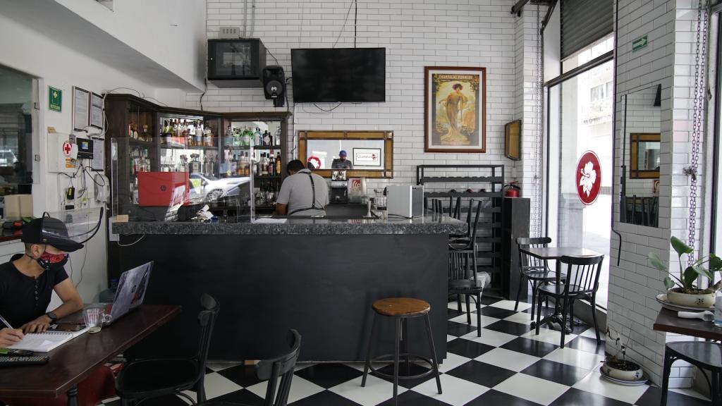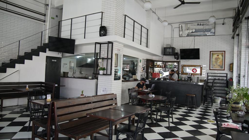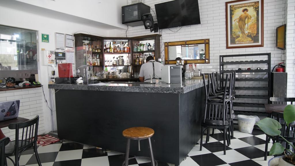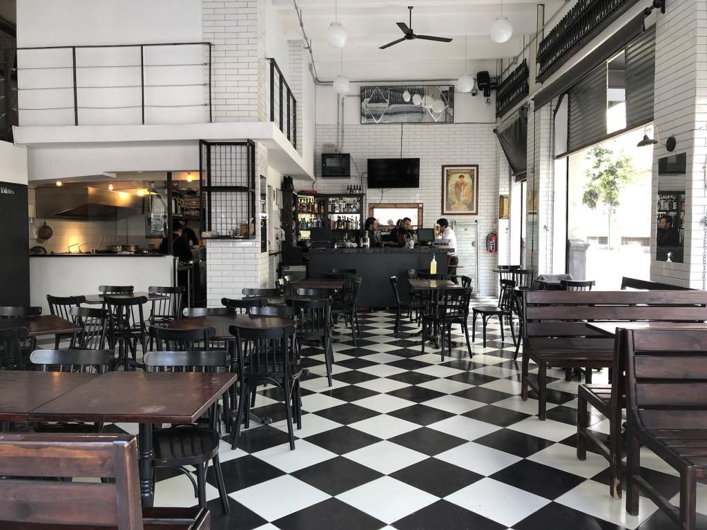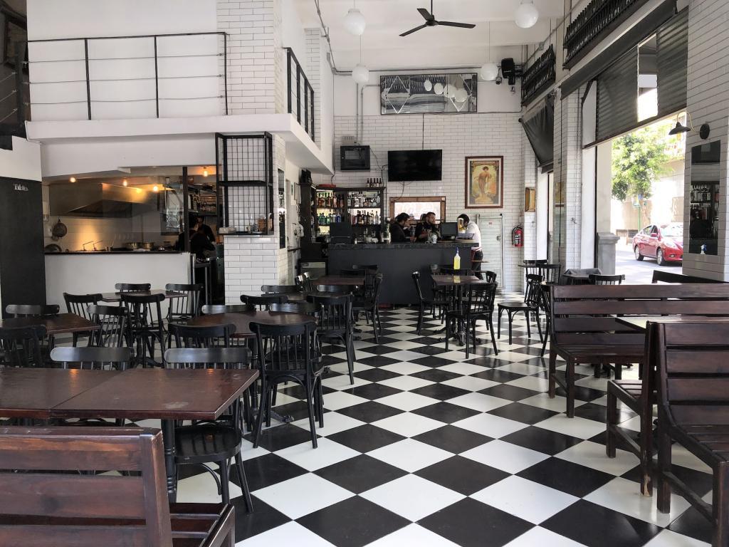 Ventanales Piso de Domino Ajedrez Running Shot Bar Restaurante Cafe Cafeteria Esquina Calle Azulejo