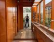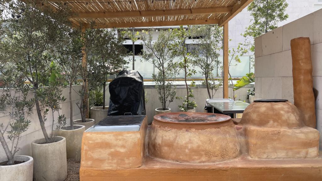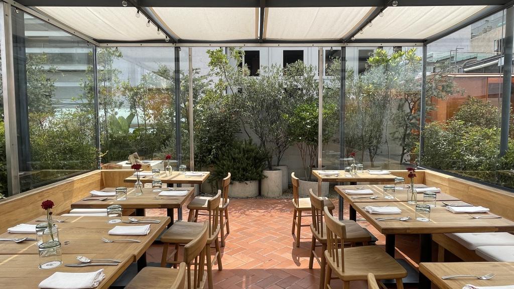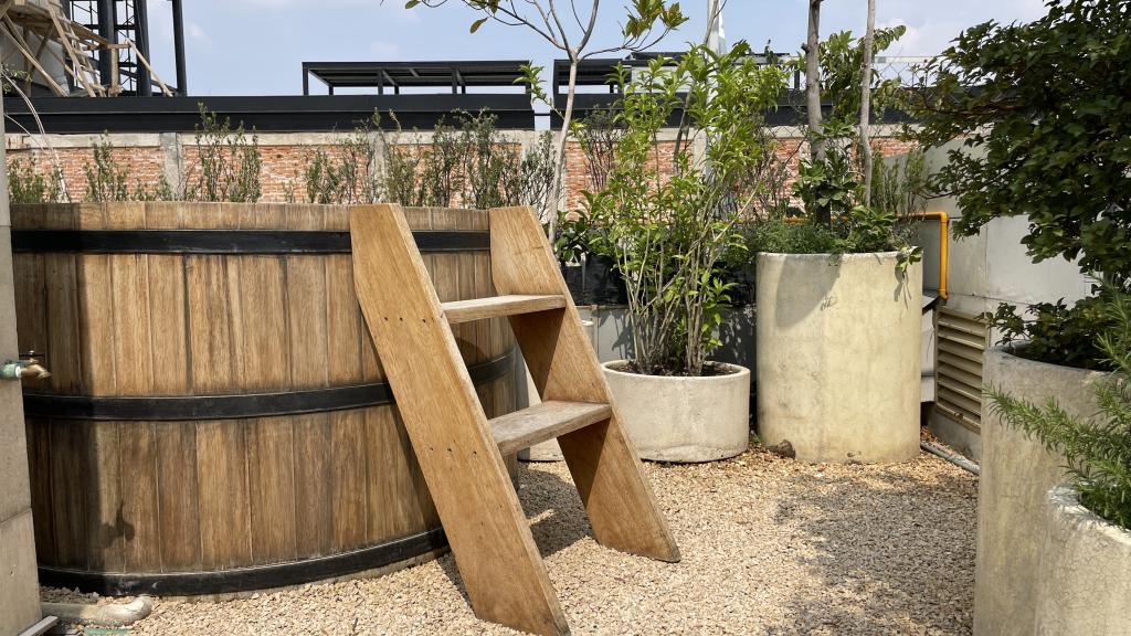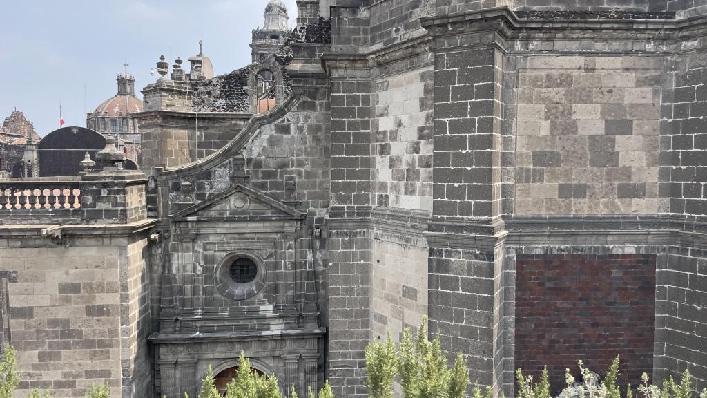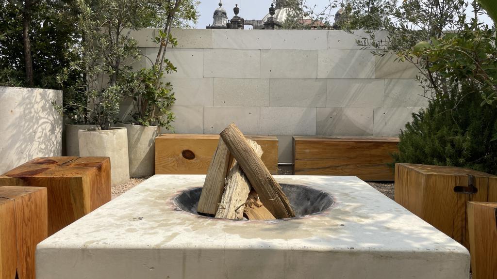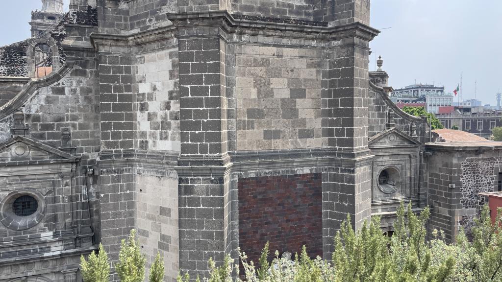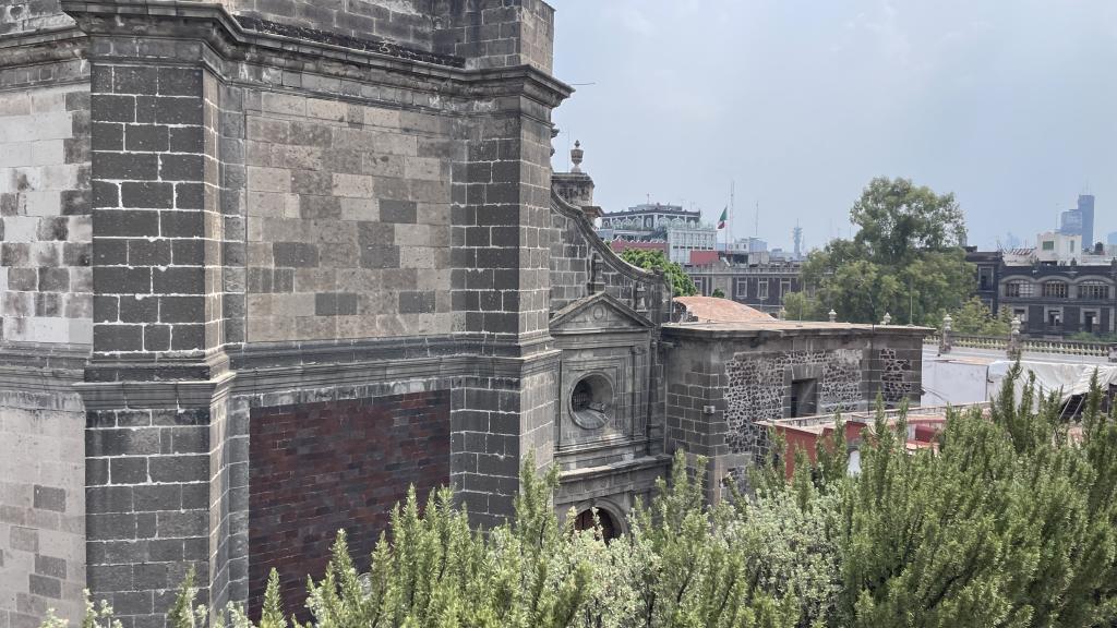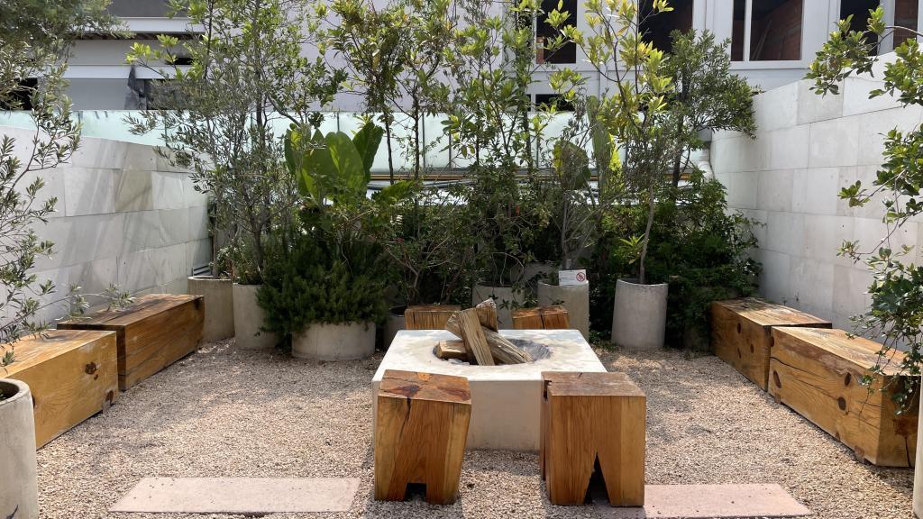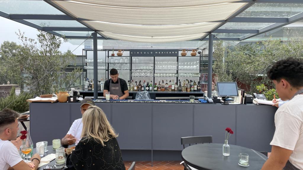 Alberca en la terraza del Hotel Círculo Mexicano, ubicado en el Zócalo de la CDMX. En edificio estilo colonial con detalles de decoración modernos.