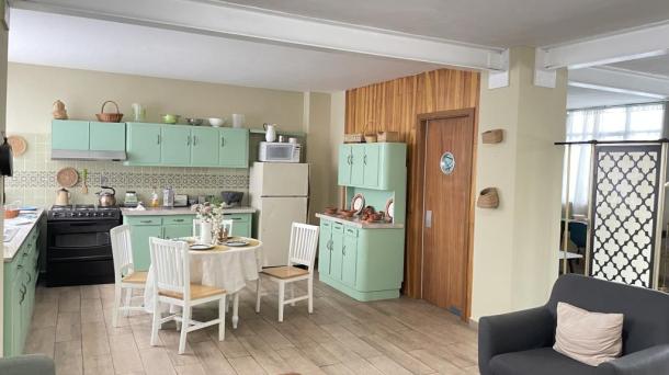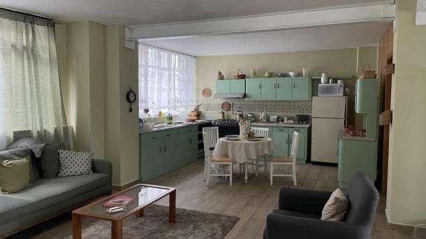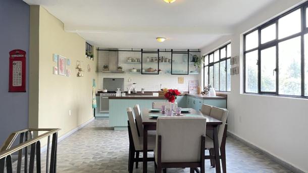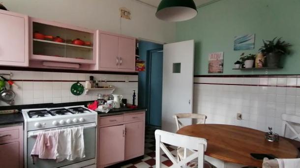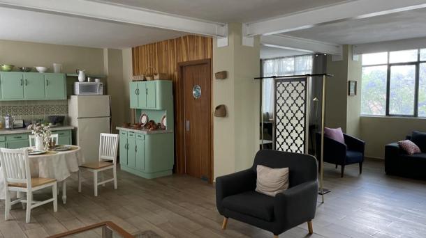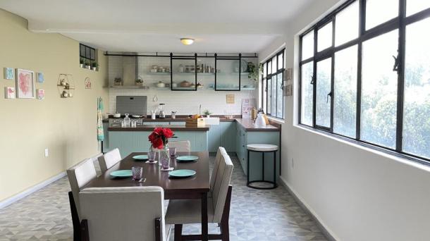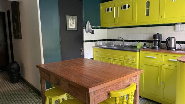 Cocina con Isla o Barra Cocina Terraza / Rooftop Ingles Frances Porfiriana Retro Vintage Deslavado Usado Gastado Open Kitchen / Cocina Abierta