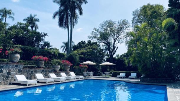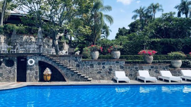 Alberca de hotel de lujo.