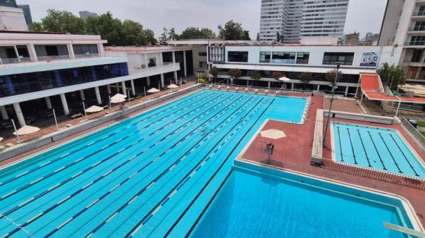 Alberca dentro del club deportivo Centro Libanés. Con vistas a la ciudad y también hacia la fachada del edific...