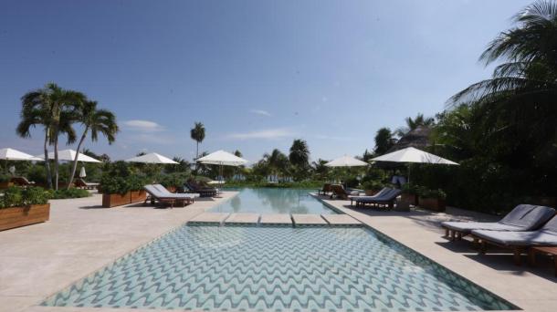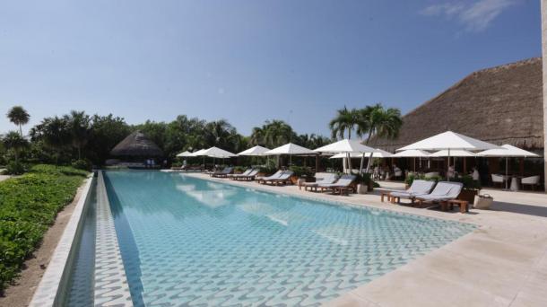 Alberca de hotel de lujo.
